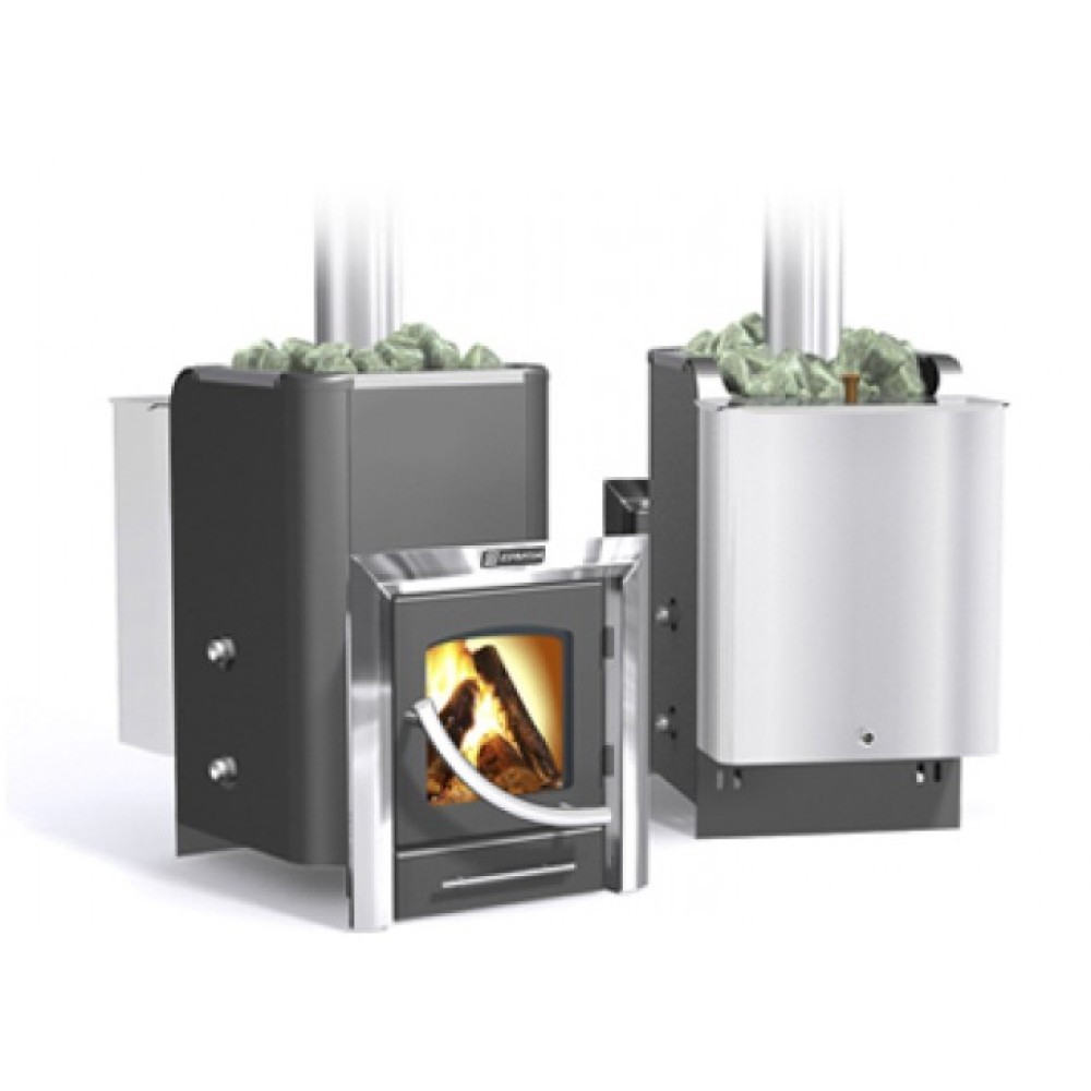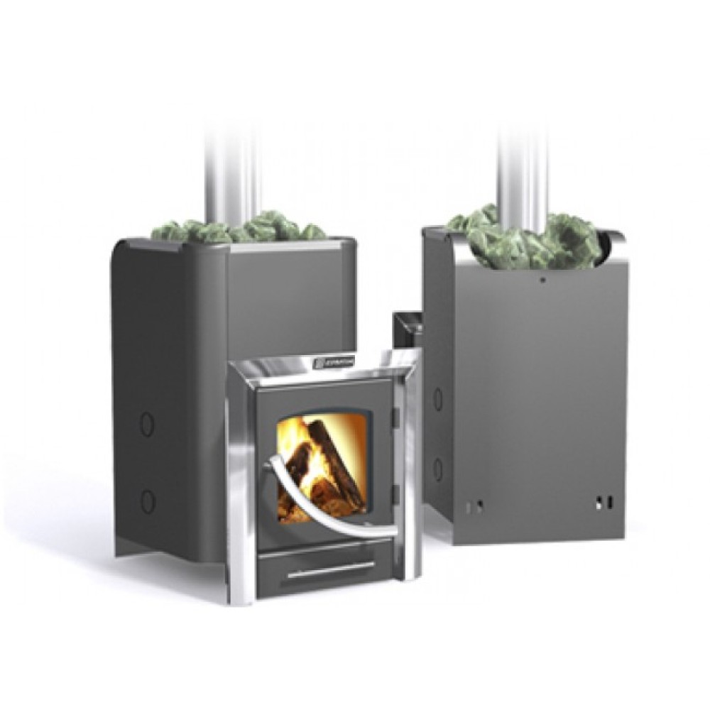 Самая компактная дровяная банная печь на основе «Свободной трансформации FT», с изменяемой функциональностью. Печь создана для небольшой русской бани или финской сауны с объемом парной от 6-14 м3.