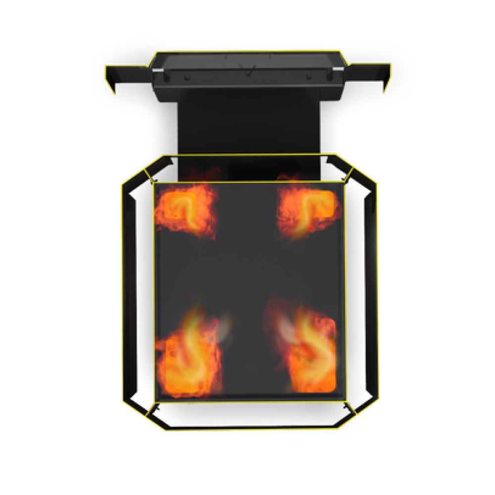 - Максимальный КПД, благодаря уникальной конструкции топки и сложной двухпоточной системе дымовых каналов с камерой распределения огня под каменкой