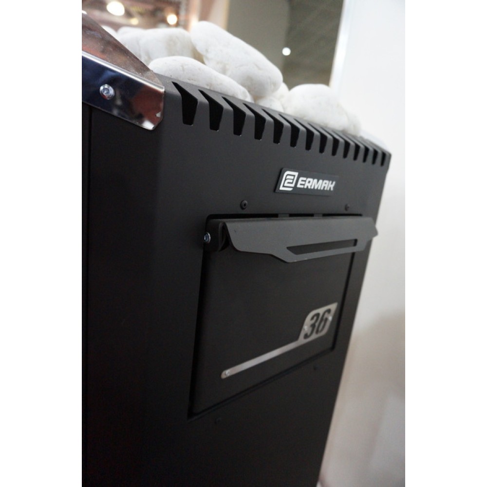 Дровяная печь ЕрмакУралочка 36 (2018) укомплектована газовой горелкой, что позволяет использовать в качестве топлива не только древесину, но и природный газ. При необходимости горелка легко снимается и вместо не устанавливается дверца. Данная печь рассчитана на большую парилку объемом от 30 до 36 куб. метров. Для подогрева воды печь можно дополнительно оборудовать теплообменником.