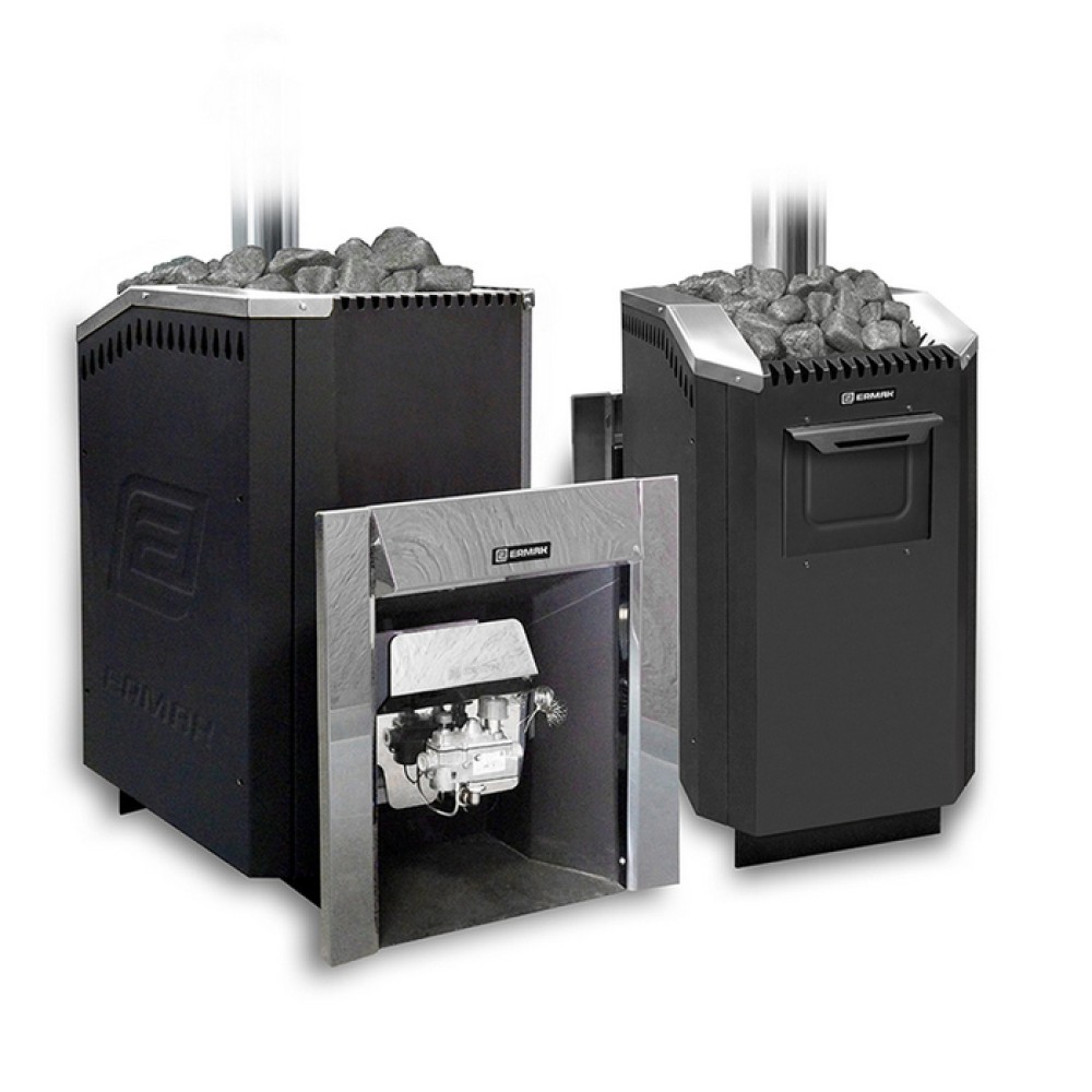 Серия дровяных печей Уралочка от компании Ермак предназначена для установки в коммерческих или частных банях/саунах. Особенностью моделей данной линейки является возможность установки газовой горелки. Печи это серии могут поставляться с топкой из углеродистой или нержавеющей стали. Печи могут быть доукомплектованы компонентами для нагрева воды, парообразователем.