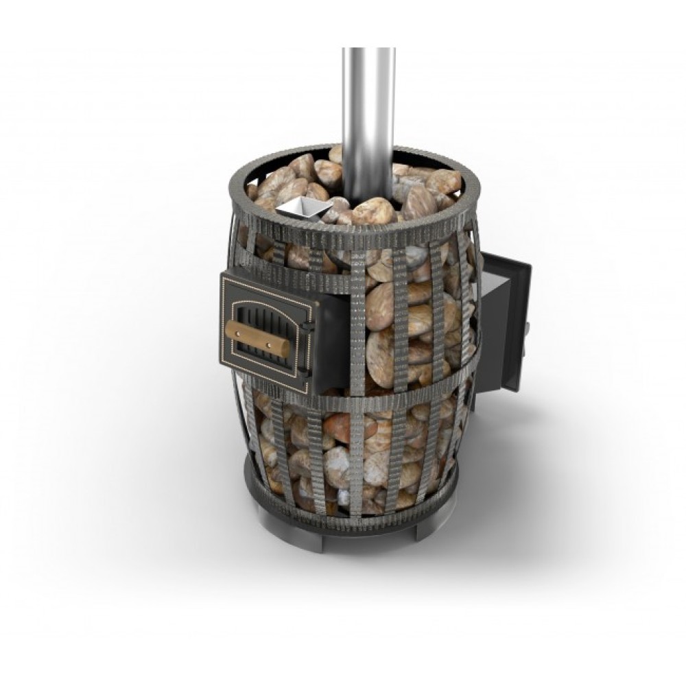 Новая линейка дровяных печей для бани «Легенда Русский пар 30» рассчитана на парное отделение объемом от 18 до 32 м3. «Легенда Русский пар 30» отличается от своей предшественницы дровяных печей для бани «Легенда Ураган» прежде всего наличием закрытой каменки, которая охвачена круговым потоком пламени, в ней камни прогреваются до температуры 600 °С, что позволяет создать в парилке наиболее благоприятный микроклимат, не пересушивая и не перегревая воздух. Вода подается в самую горячую центральную часть закрытой каменки через воронку (при этом дверь закрытой каменки должна быть приоткрыта для поступления мелкодисперсного пара в парное отделение) Все элементы топки отлиты из чугуна и соединены между собой с помощью болтового соединения через термостойкий шнур и герметик, а закрытая каменка изготовлена из жаростойкой высоколегированной 4 мм нержавеющей стали. Вес камней в закрытой каменке - 30-45 кг.