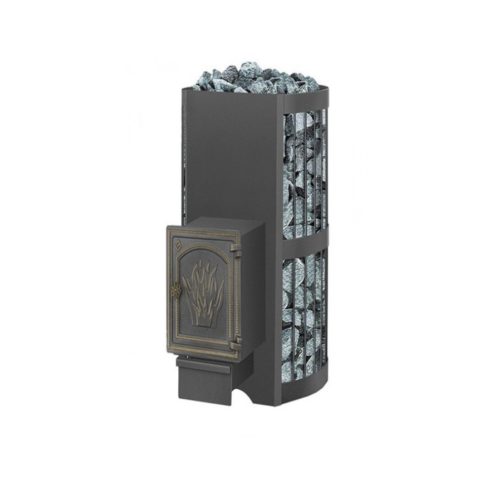 Дровяная печь рассчитана на объем парильного помещения 14-30 м3. В конструкции данной печи предусмотрен топочный тоннель длиной 250 мм, при помощи которого печь топится из соседнего помещения, смежного с парильным.