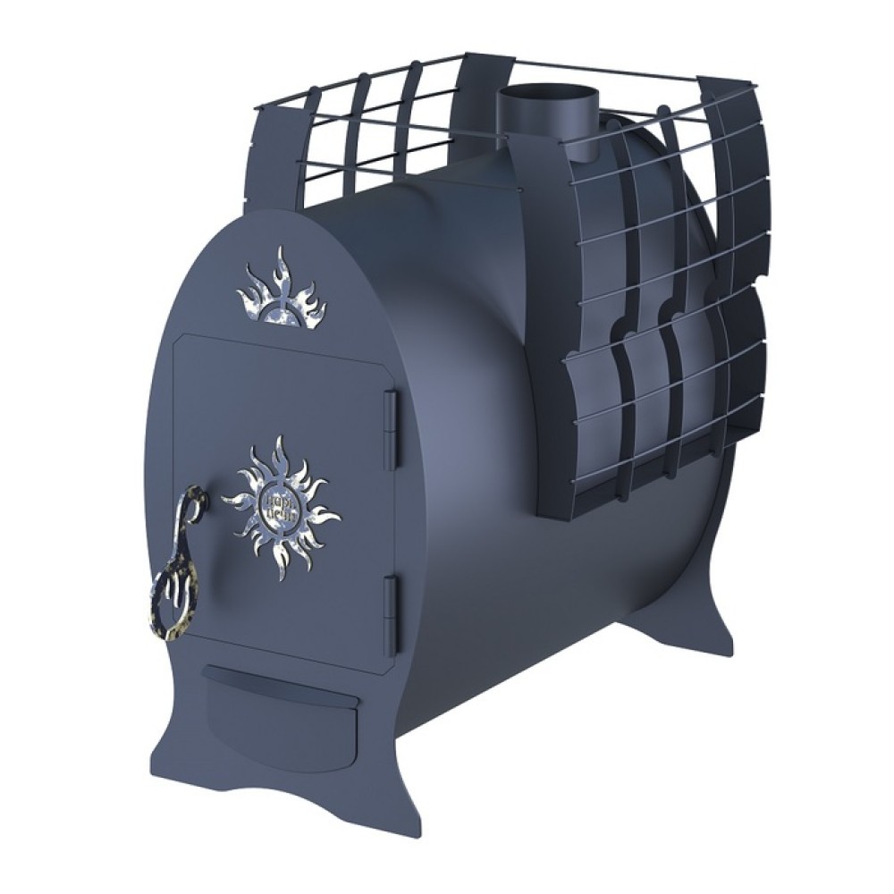 Дровяная банная печь Царь печи "Емеля" (8мм) обладает компактными габаритами и имеет вынос топки - 180 мм, благодаря чему можно использовать для растопки дрова ждиной до 60 см. Ашрегат изготавливается из прочной стали толщиной до 8 мм и оснащен глухой дверцей с фирменным логотипом. Для нагрева воды необходимо дополнительно приобрести навесной бак.