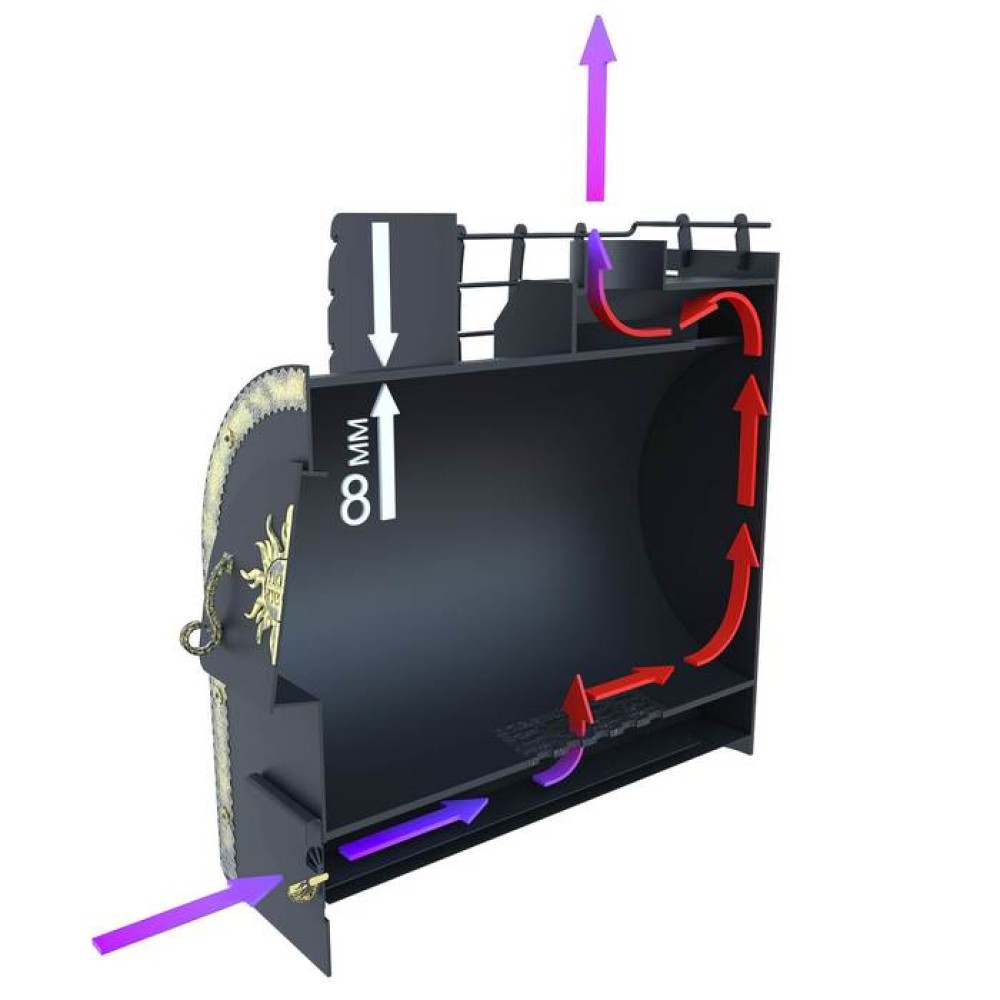 Царь печи "Царь-Забава" (8мм) - это стильная банная печь премиум-класса с выносной топкой со стеклянным просмотровым окном. Конструкция печи отличается высокой прочностью и выполнена из качественной стали толщиной до 8 метров. Модель отличается оригинальным дизайном с резной каменкой. Дополнительным оснащением может стать бак для нагрева воды.