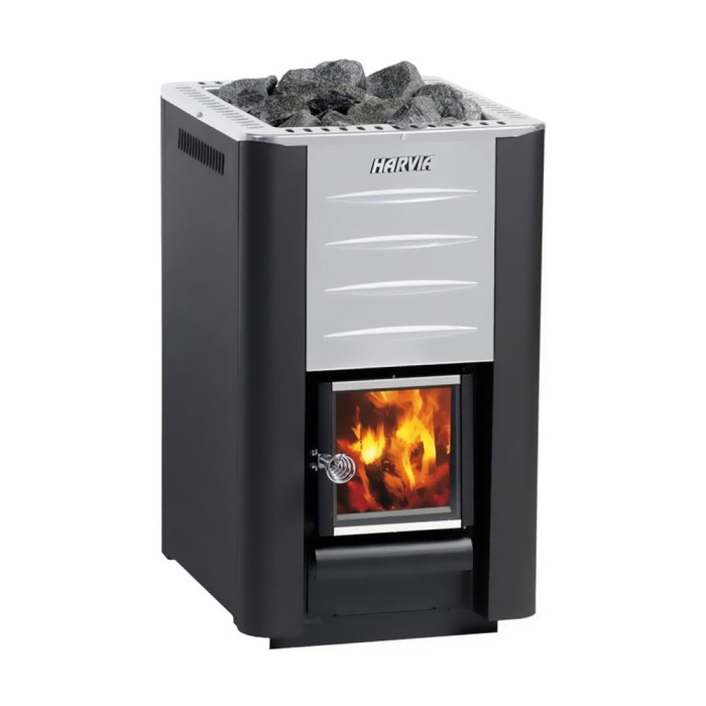 Дровяные печи Harvia отличаются продуманной конструкцией, обеспечивающей лучшие условия для горения дров и создания жара. Дверца топки оборудована большим смотровым окном, позволяющим наблюдать за тем, как горит огонь. По желанию пользователь может перевесить дверцу таким образом, чтобы она открывалась в другую сторону. Корпус из нержавеющей стали выкрашен в насыщенный черный цвет и отличается компактными размерами, что позволяет разместить каменку таким образом, что даже в небольшом помещении останется достаточно места для комфортного передвижения.