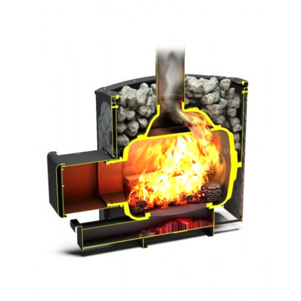 - Округлая форма топки и большое количество ребер по всей поверхности гарантируют быстрый и равномерный нагрев помещения, исключая появление застойных "холодных" зон