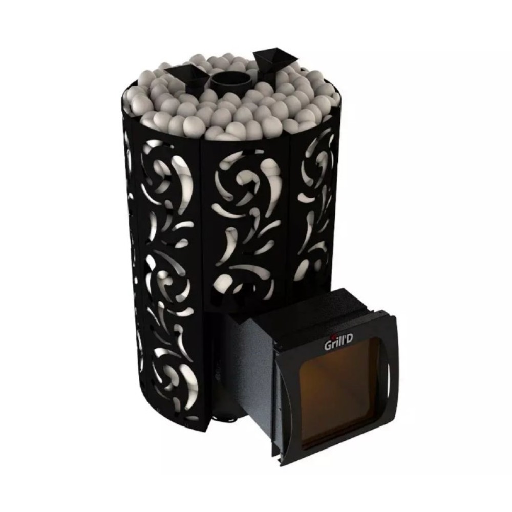 Дровяные печи для саун и бань серии Violet от российского производителя Grill'D отличаются от других линеек наличием каменки закрытого типа и оригинальным дизайном. Внешний декор выполнен в виде растительного орнамента, что перекликается по духу с русской баней и древнерусской росписью по дереву.