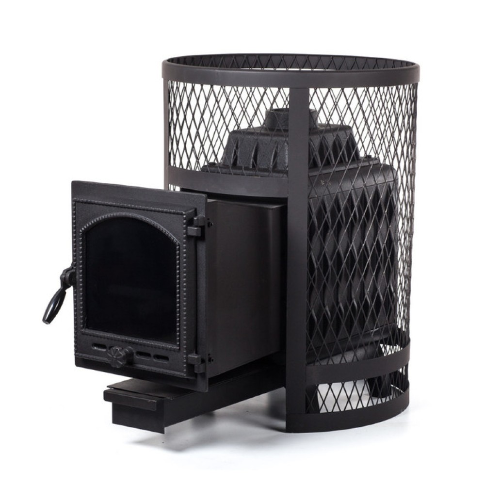 Рассматриваемая модель дровяной печи Fireway (Фаервэй) Кольчуга 18 (дверца К404) позволяет получить все комфортные сочетания температуры и влажности воздуха. Чугунная печь окантована стальной сеткой, в которую закладываются камни оптимальной фракции до 150 мм. Такое дизайнерское решение сделает ваше любимое место для отдыха интересным, наполненным уютом и теплом.