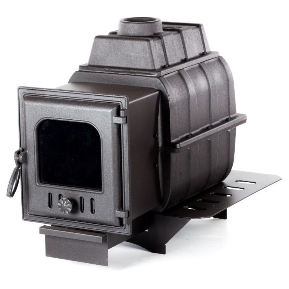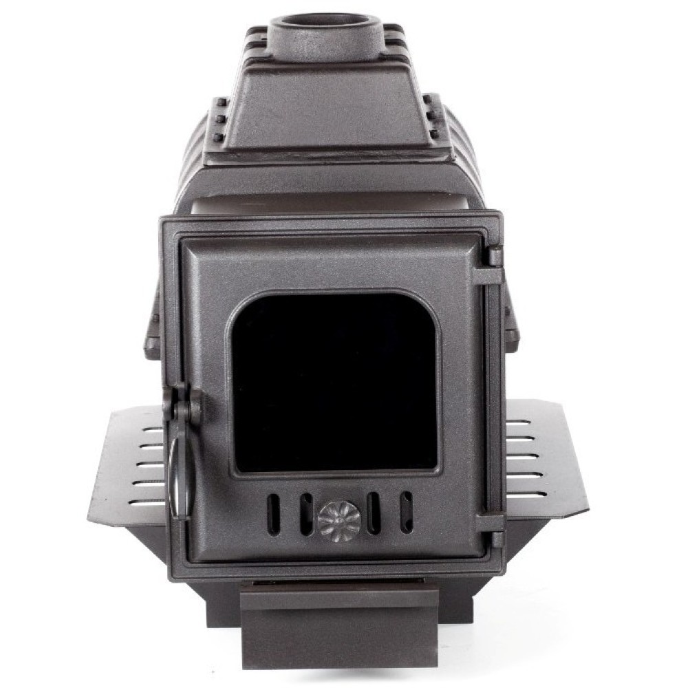 - Чугунная дверца с термостойким стеклом обдувается воздухом (создана воздушная завеса), не подвержена оседанию копоти, обзор со временем не теряется;