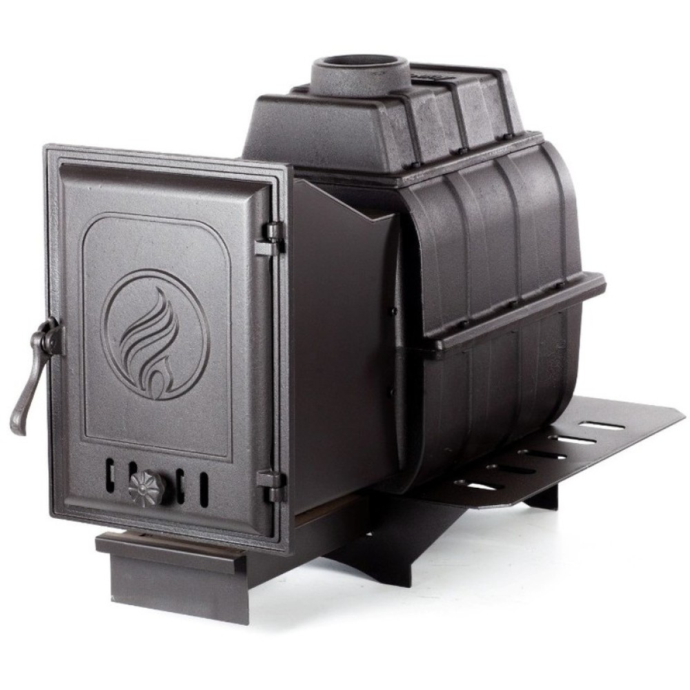 - Чугунная дверца с термостойким стеклом обдувается воздухом (создана воздушная завеса), не подвержена оседанию копоти, обзор со временем не теряется;