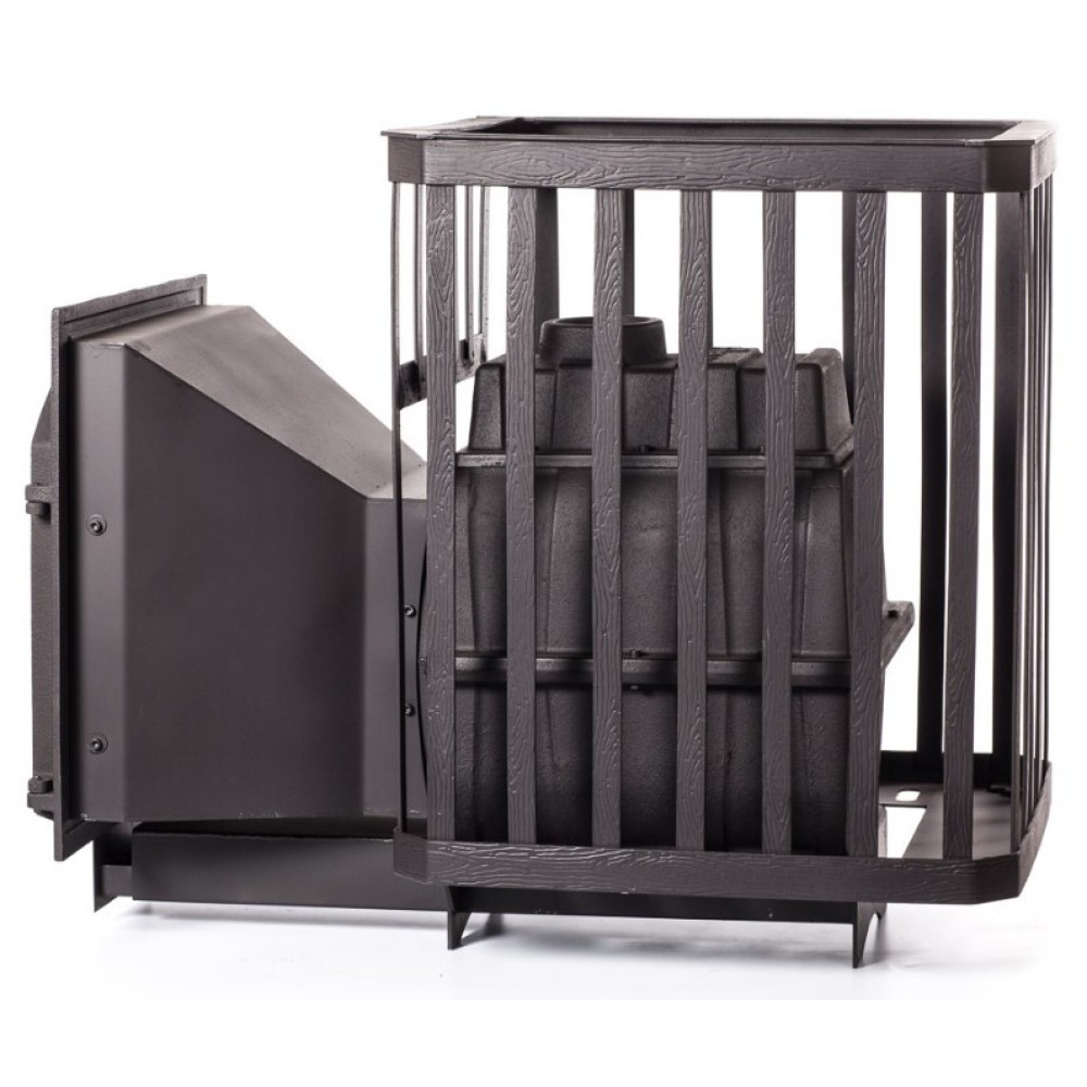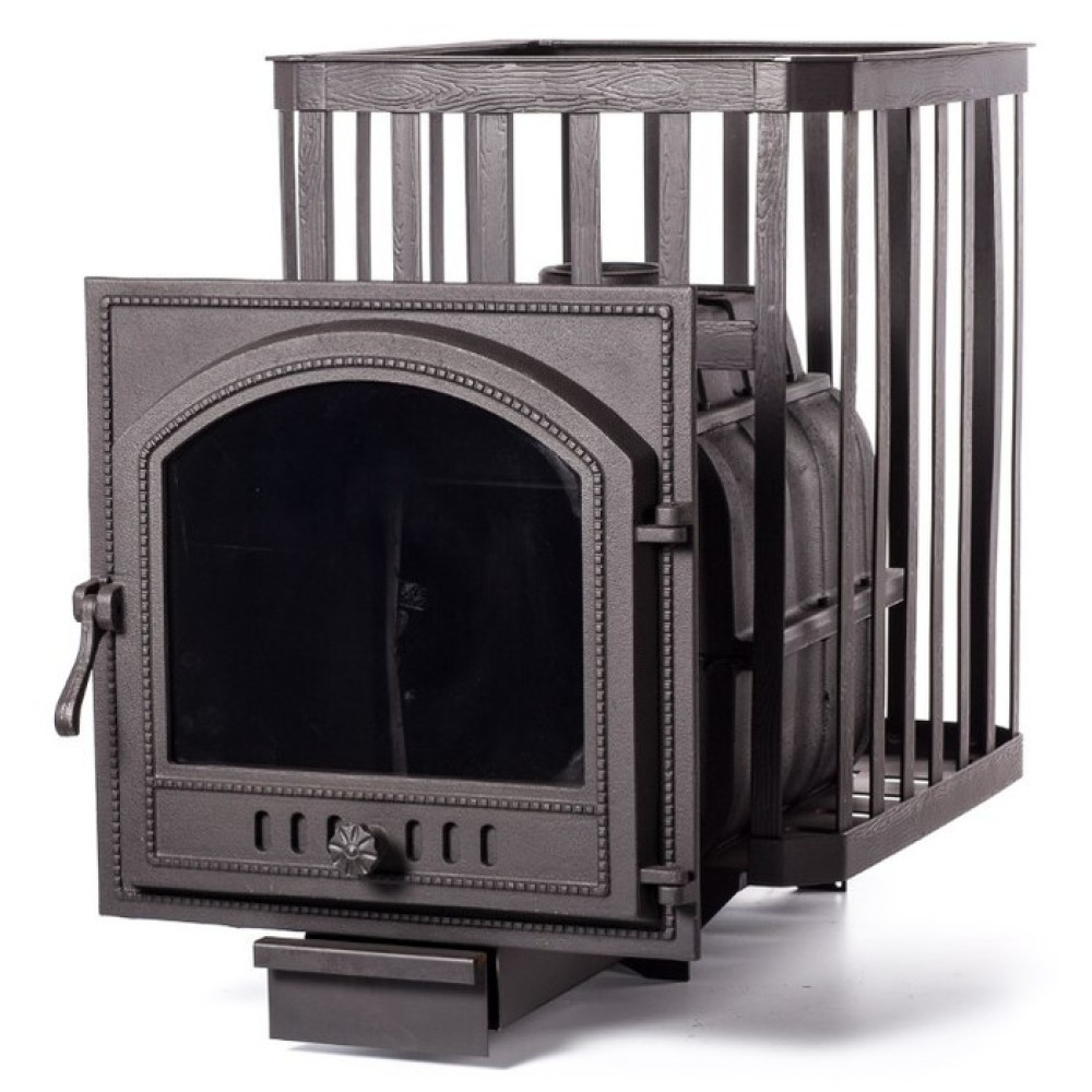 Банная печь Fireway (Фаервей) ПароВар 18 сетка-ковка (505) имеет в своей конструкции не только увеличенный по длине топочный тоннель, но и большую топочную дверцу с жаропрочным стеклом для удобного контролирования огня. В объемной каменке-сетке помещается большое количество камней для создания пара.