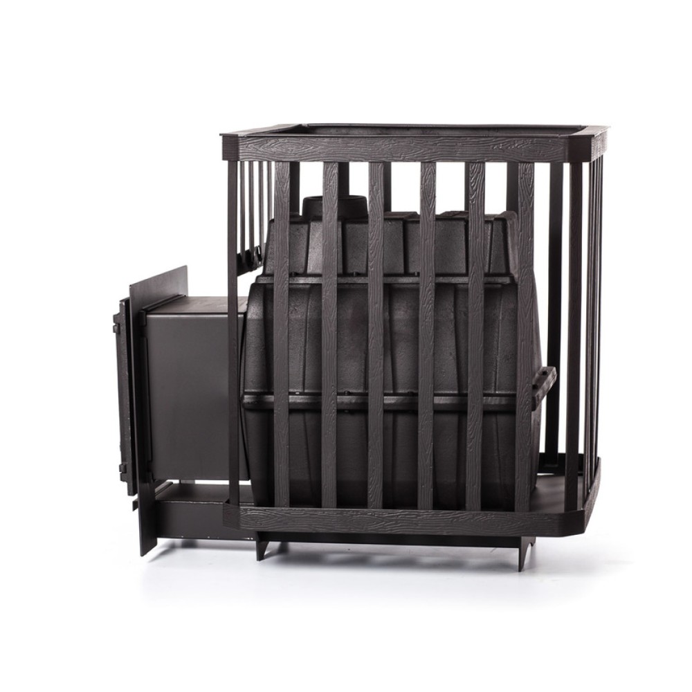 - Каменка выполнена в виде сетки – используется кованая сталь, что придает конструкции необходимую жесткость и устойчивость;