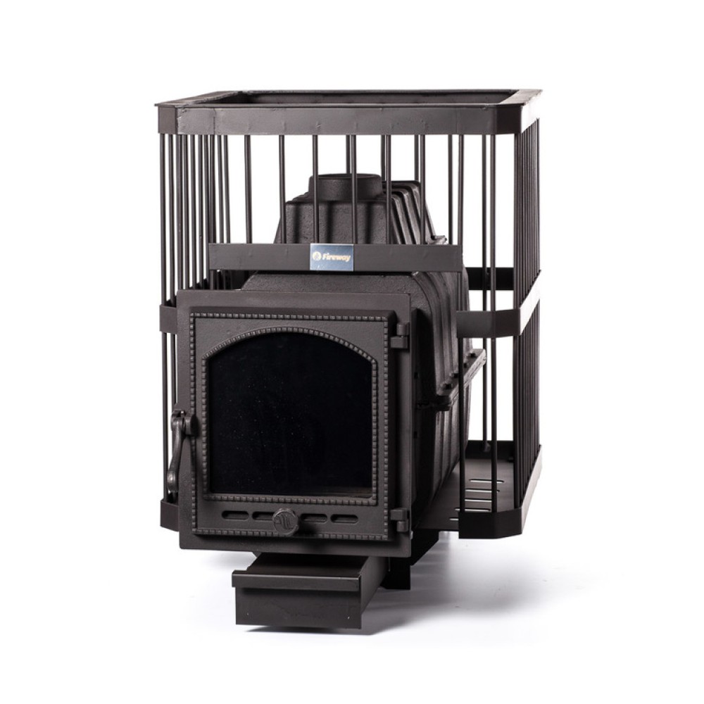 Дровяные печи Fireway серии ПароВар созданы для уюта и комфорта. Все печи выполнены из высококачественного чугуна, который является самым долговечным и эффективным материалом в печном деле. Топливом для чугунных печей-каменок служат дрова, отходы деревообрабатывающей и бумажной промышленности, брикеты, бурый уголь. Диаметр дымохода 115 мм. Расположение дымохода сверху.