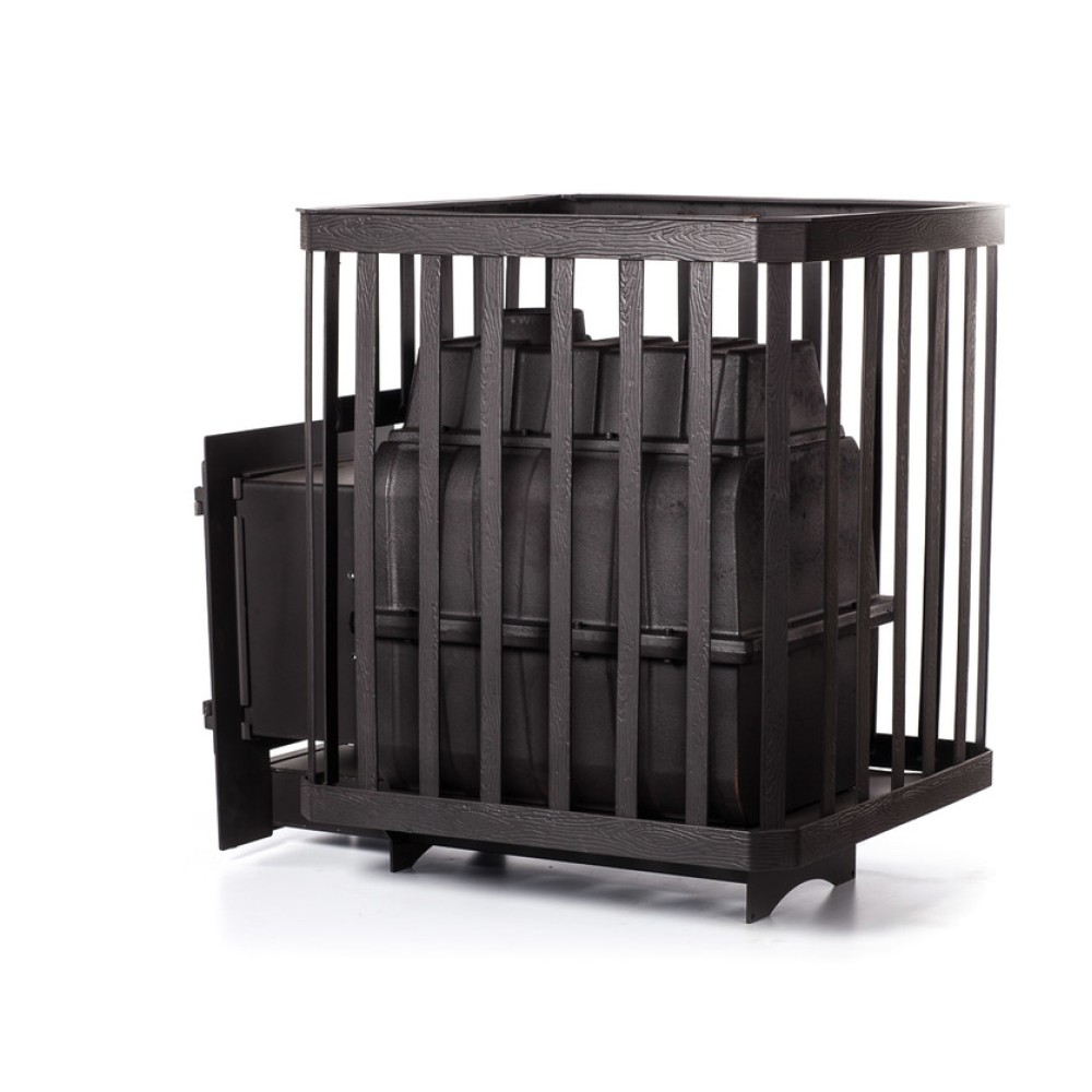 - Каменка выполнена в виде сетки – используется кованая сталь, что придает конструкции необходимую жесткость и устойчивость;