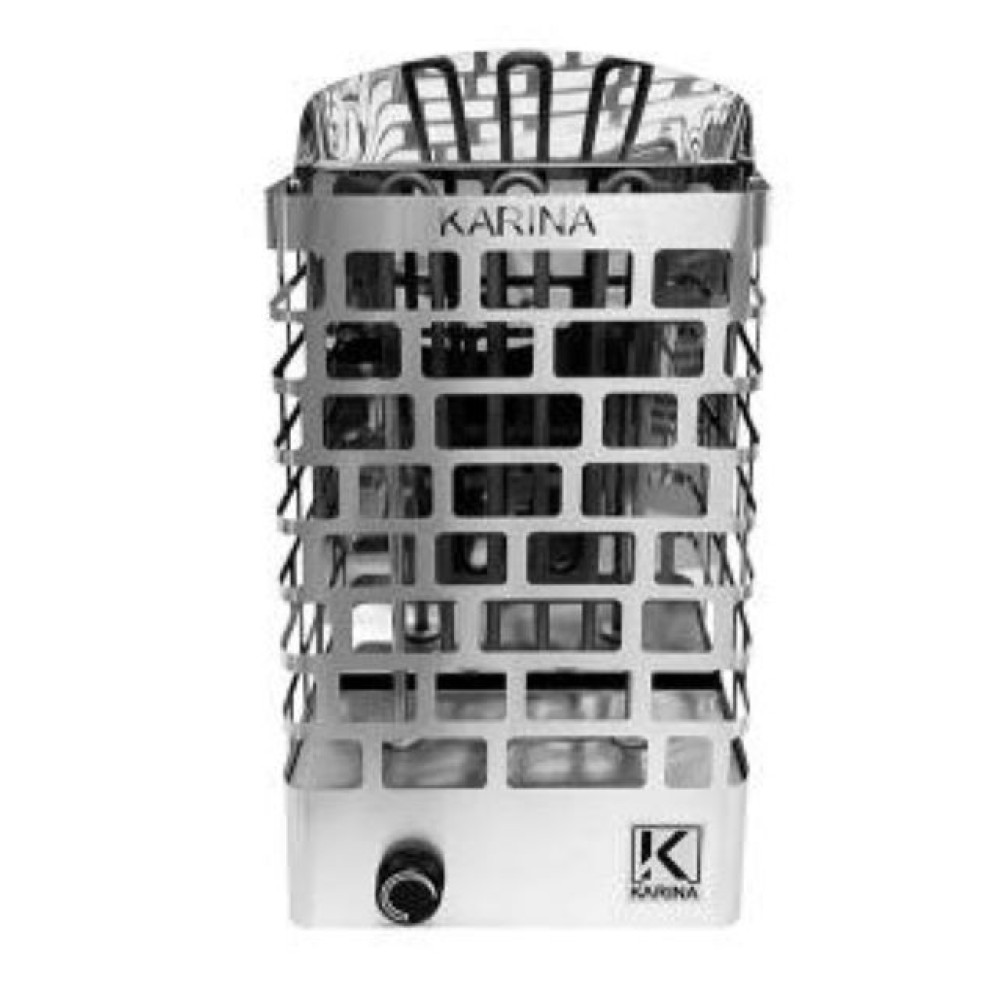 Описание Karina Air 2,5Электрическая печь Karina (Карина) Air 2,5 выполнена в сетчатом корпусе из качественной нержавеющей стали. Открытая каменка вмещает около 40 кг, которые нагреваются при помощи ТЭНа. Это проверенный годами элемент, материалом в котором выступает специальная сталь. Встроенная панель управления позволяет регулировать температуру прямо из парилки.