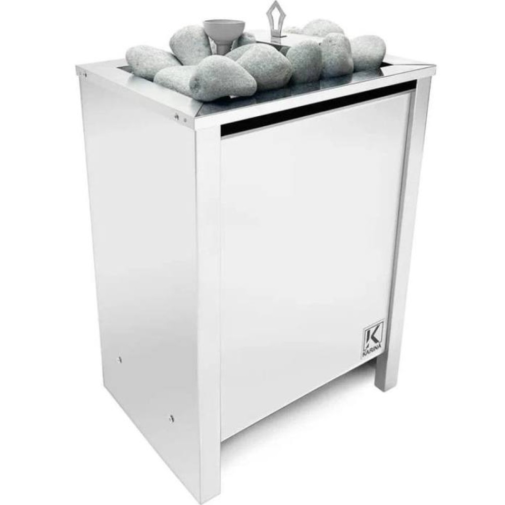 Описание Karina CLASSIC STEAM 4,5Электрическая печь Karina (Карина) CLASSIC STEAM 4,5 подойдет для установки и эксплуатации в небольшой парной за счёт своих компактных габаритов. Эффективное оборудование оснащено пароиспарителем. Печь легко управляется, не требует особенного технического обслуживания и имеет стильный современный дизайн