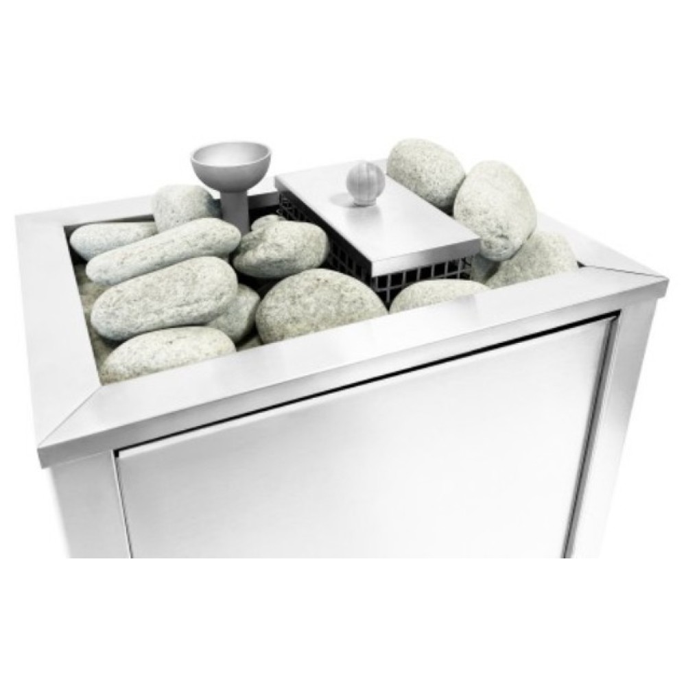 Представленная модель электрокаменки имеет отсек для камней, который вмещает до 40 кг.