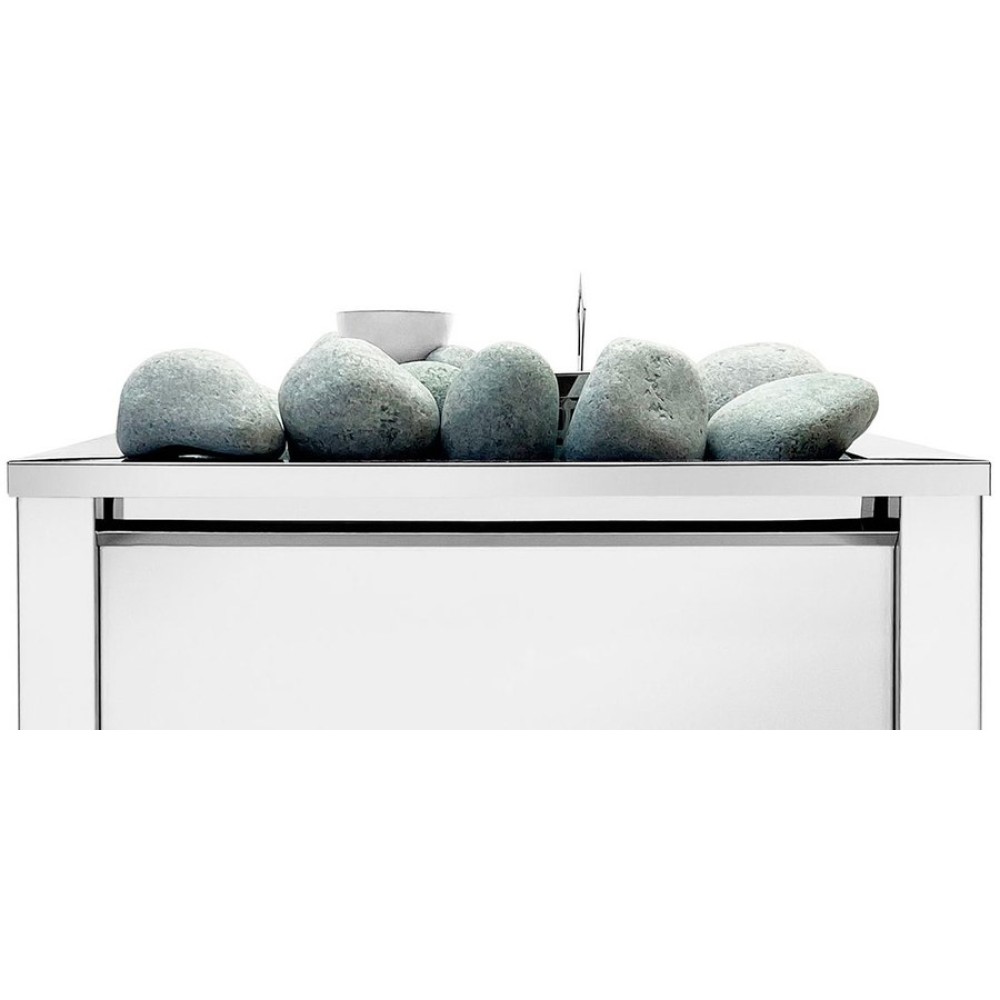 Представленная модель электрокаменки имеет отсек для камней, который вмещает до 60 кг.