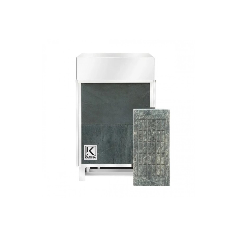 Банные печи Karina серии ELITE предназначены для парилок малого и среднего размера. В модельном ряду представлены устройства мощностью от 3,0 до 18,0 кВт. Печи выпускаются в трех вариантах каменной облицовки - талькохлорит, змеевик и кварцит. Для управления оборудованиям необходимо дополнительно приобрести выносной контроллер.