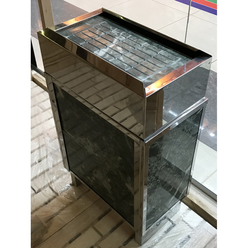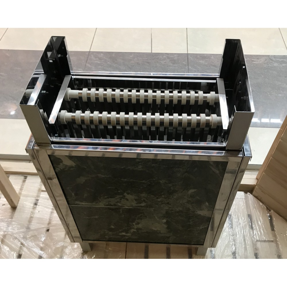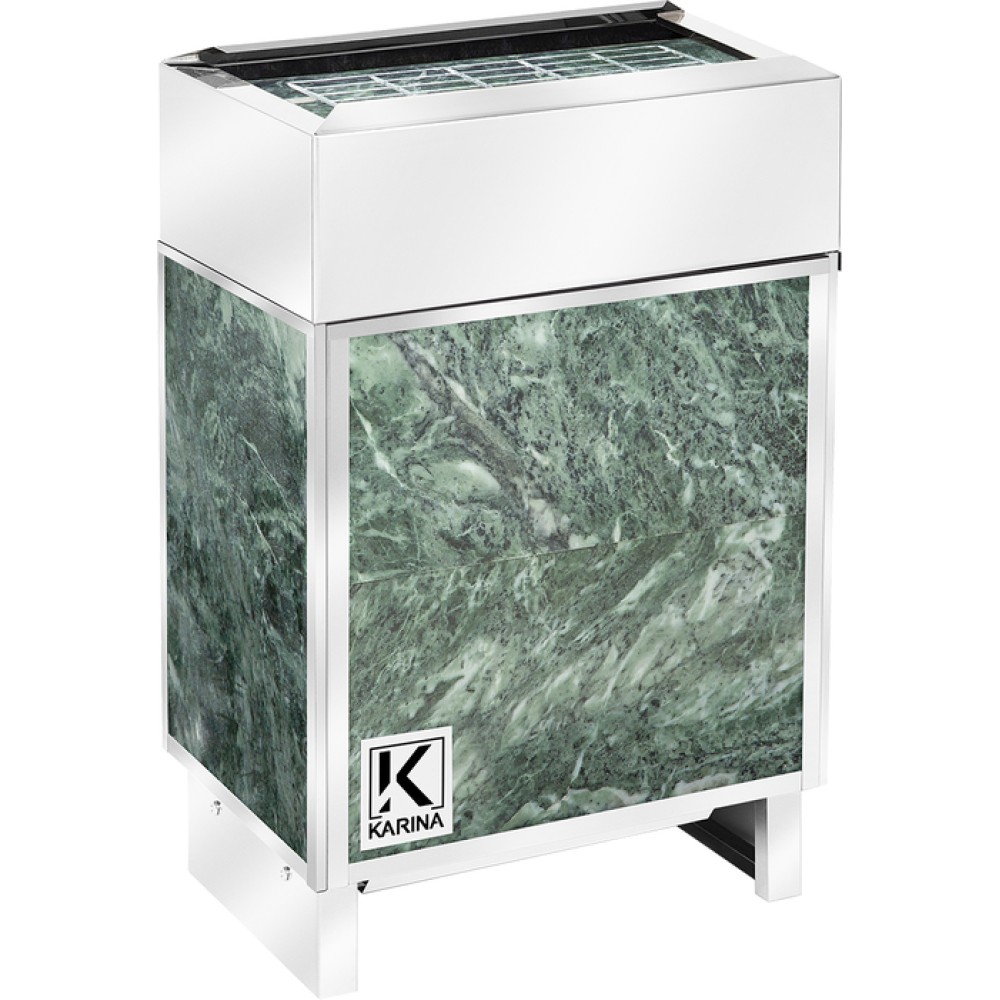 Описание Karina ELITE 6 змеевикЭлектричекая банная печь Karina (Карина) ELITE 6 змеевик обладает стильным дизайном за счет облицовки из змеевика. Модель обладает мощностью, способной эффективно обогревать парилку объемом 7 куб. метров. Изпользование змеевика позвояет увеличить тепловые характеристики печи и оказывает полложительное влияние на здоровье человека.