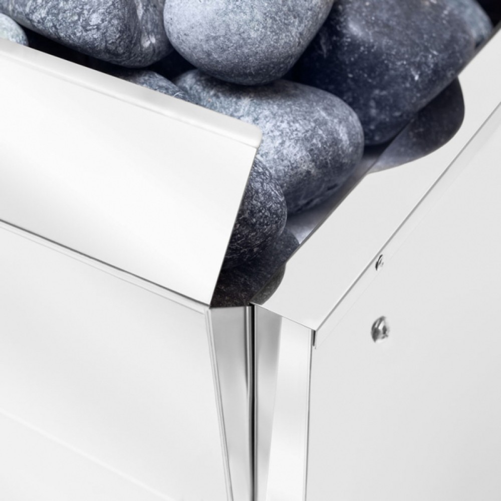 Каменка выдержана в лаконичном современном стиле, который сочетается с любым оформлением интерьера.
