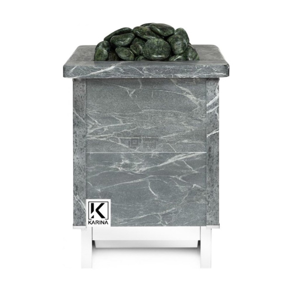 Банные печи Karina QUADRO выполнены в прямоугольной форме, где ТЭНы находятся внутри корпуса и нагревают группу камней. Для нормальной деятельности каменки требуется естественный приток воздуха. Печь работает на источнике с электрическим питанием 220 или 380 В. Корпус печей снаружи состоит из плит талькохлорита или змеевика, а основа изготавливается из нержавеющей стали.