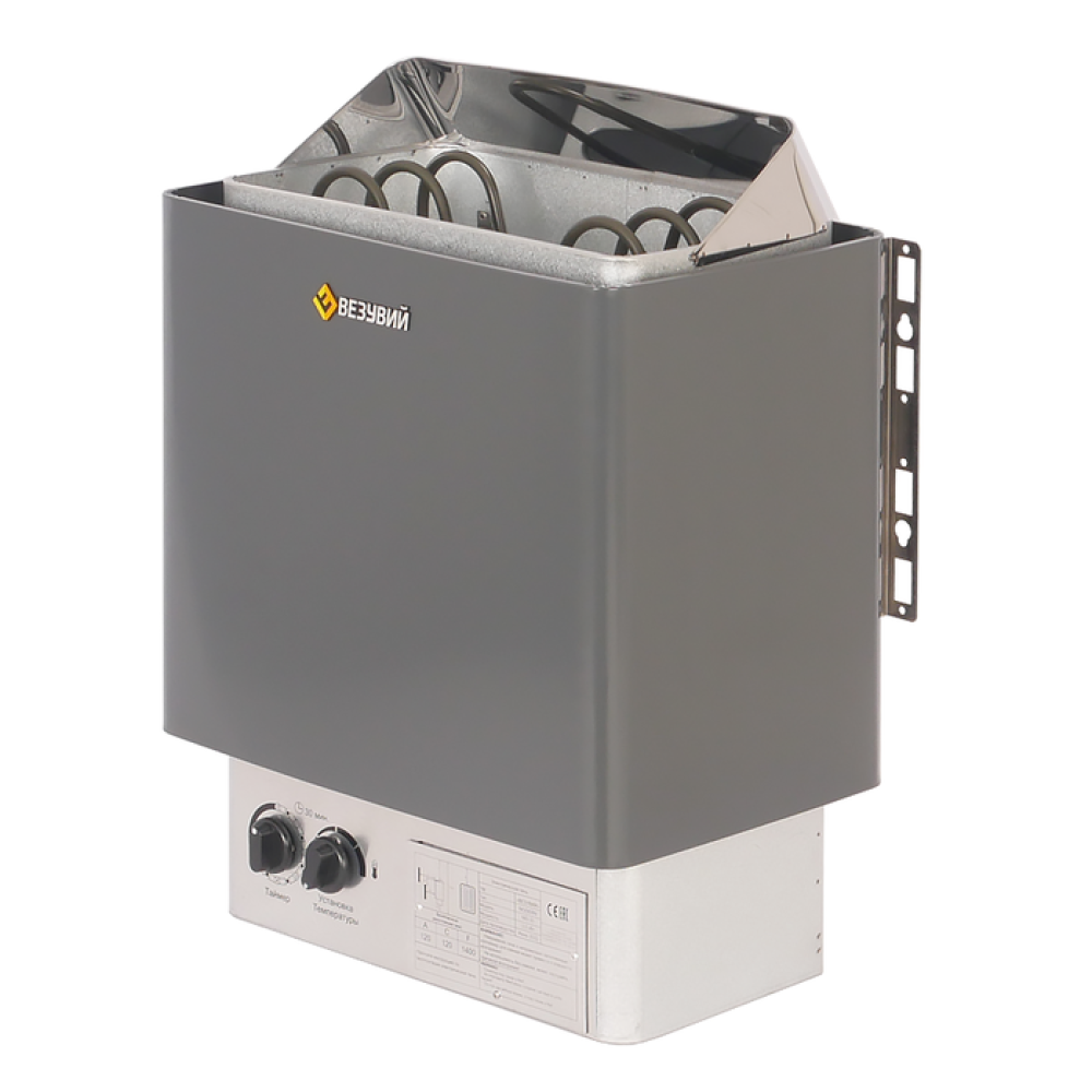 Описание Везувий MODERN-90Везувий MODERN-90 – электрическая печь с открытой каменкой. Модель устойчива к воздействию высоких температур и влаги. Представленное изделие сочетает в себе высокую эффективность и низкий уровень энергопотребления. Для управления предусмотрена встроенная панель с регуляторами рабочего времени и температуры.