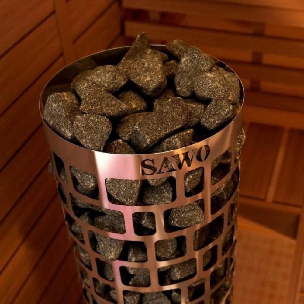 Финская компания SAWO предлагает линейку электрических печей Aries с необычным дизайном углового и пристенного типа. Внешне они напоминают каменную башню, нагревательные элементы расположены в центре, а внешний каркас представляет собой сеть, заполненную разнообразными камнями для сауны. Модели подходят для частного и коммерческого использования. В модельном ряду серии представлены электронагреватели мощностью от 4,5 до 18 кВт. В зависимости от производительности максимальная вместимость камня варьируется от 60 до 110 кг. Особенностью устройств представленной линейки является наличие разделителя нагревательных элементов, который ускоряет нагрев, улучшает циркуляцию воздуха и продлевает срок службы нагревательных элементов. Преимуществом встраиваемой каменки является то, что регуляторы термостата и таймера можно перенести на другую сторону!