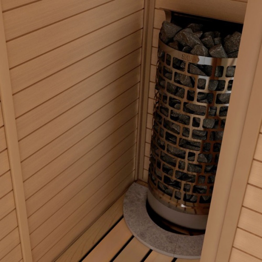 Финская компания SAWO предлагает линейку электрических печей Aries с необычным дизайном углового и пристенного типа. Внешне они напоминают каменную башню, нагревательные элементы расположены в центре, а внешний каркас представляет собой сеть, заполненную разнообразными камнями для сауны. Модели подходят для частного и коммерческого использования. В модельном ряду серии представлены электронагреватели мощностью от 4,5 до 18 кВт. В зависимости от производительности максимальная вместимость камня варьируется от 60 до 110 кг. Особенностью устройств представленной линейки является наличие разделителя нагревательных элементов, который ускоряет нагрев, улучшает циркуляцию воздуха и продлевает срок службы нагревательных элементов. Преимуществом встраиваемой каменки является то, что регуляторы термостата и таймера можно перенести на другую сторону!