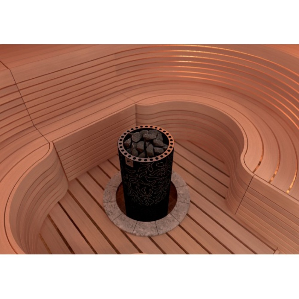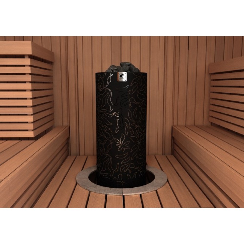 Устанавливается на полу. Вы можете разместить печь у стены, в углу или в центре парилки.