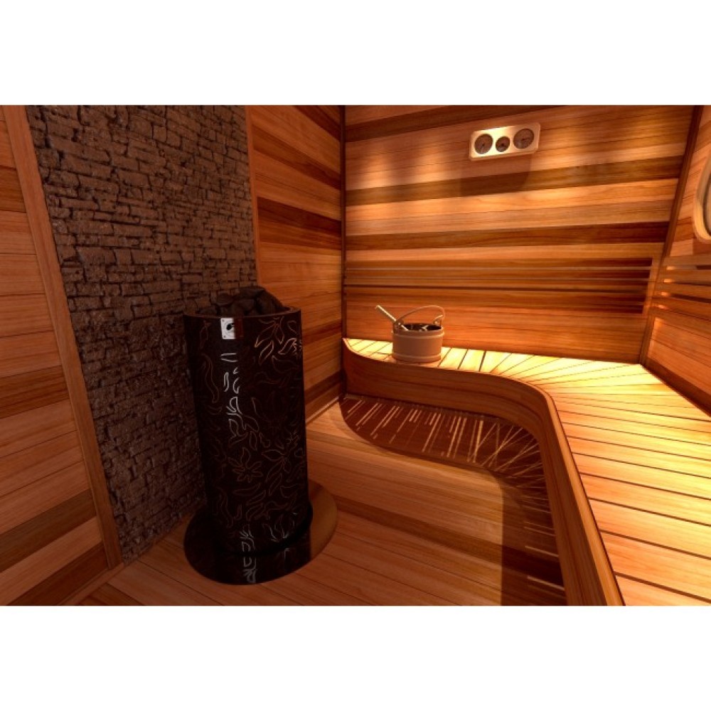 Устанавливается на полу. Вы можете разместить печь у стены, в углу или в центре парилки.