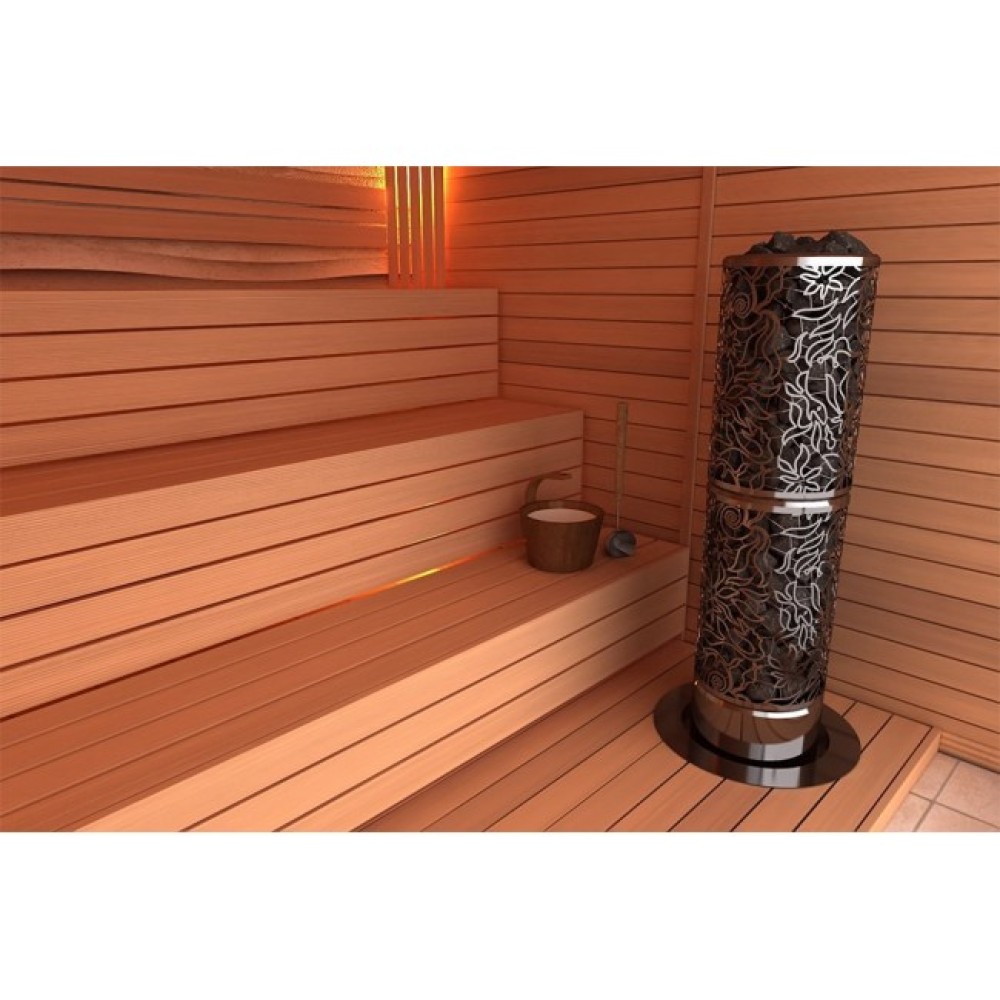 Электрические печи SAWO серии Dragonfire Heaterking ROUND имеют длинную и мощную конструкцию, которая удерживает впечатляющее количество камней. Уникальный стальной дизайн с узором Junglefire предает каменки особый стиль. Все устройства имеют хорошую мощность и оснащены выносным пультом управления.