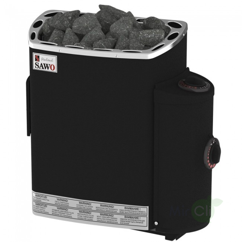 Электрические печи SAWO серии Mini являются прекрасным решением для маленьких саун. Компактные габариты и возможность переносить блок управления на левую или правую сторону позволяют разместить приборы данной серии в очень небольшом пространстве. Также есть возможность использования внешнего блока управления.