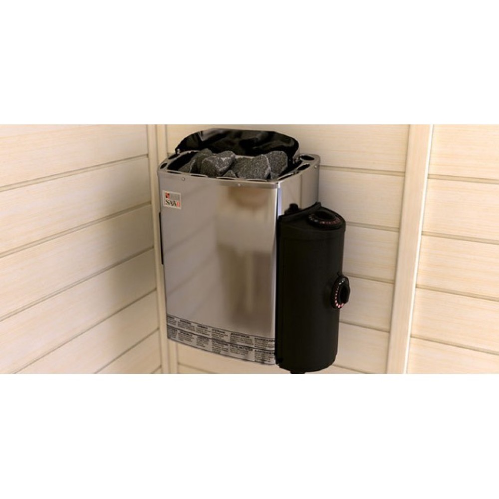 Электрические печи SAWO серии Mini являются прекрасным решением для маленьких саун. Компактные габариты и возможность переносить блок управления на левую или правую сторону позволяют разместить приборы данной серии в очень небольшом пространстве. Также есть возможность использования внешнего блока управления.