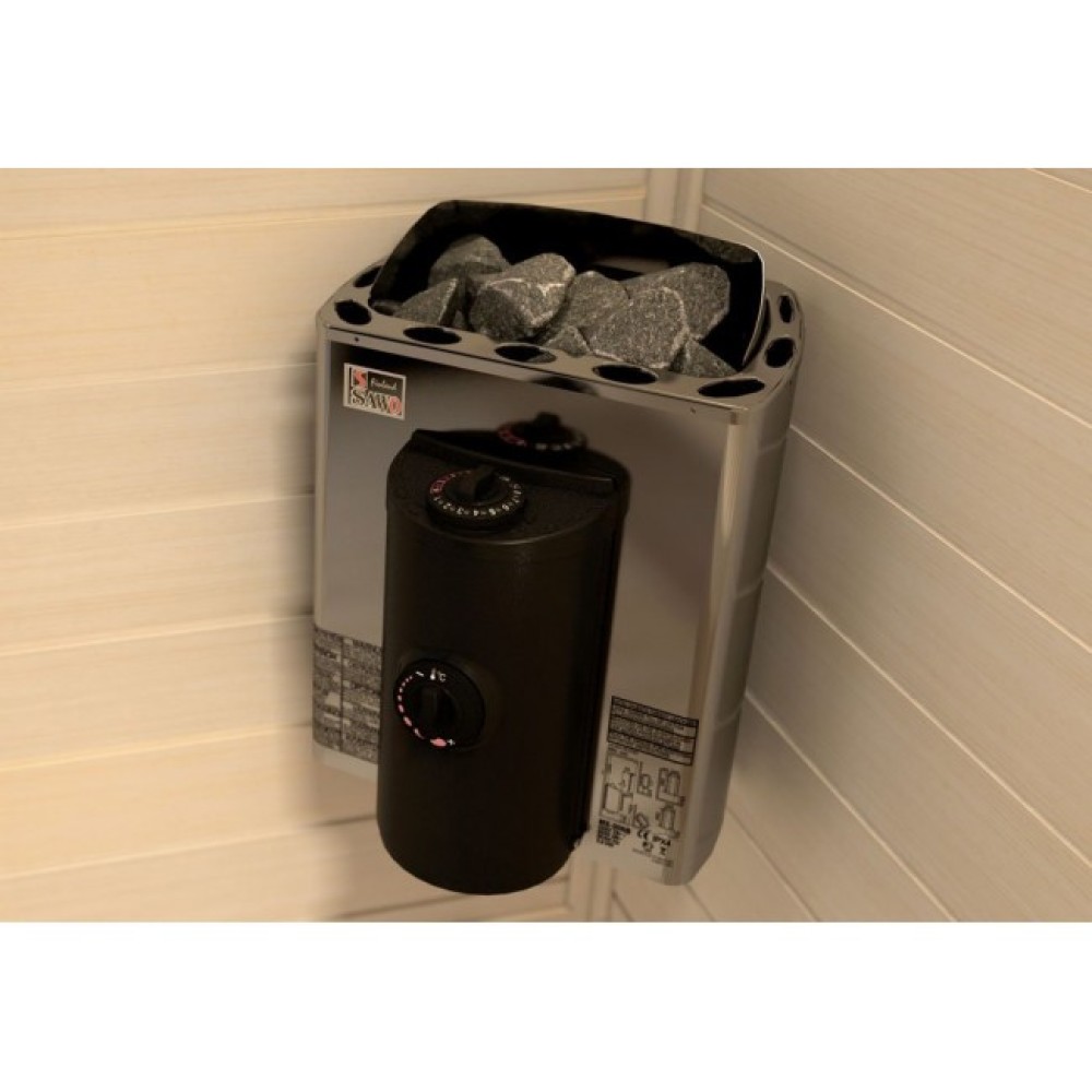 Электрические печи SAWO серии Mini являются прекрасным решением для маленьких саун. Компактные габариты и возможность переносить блок управления на левую или правую сторону позволяют разместить приборы данной серии в очень небольшом пространстве. Также есть возможность использования внешнего блока управления.