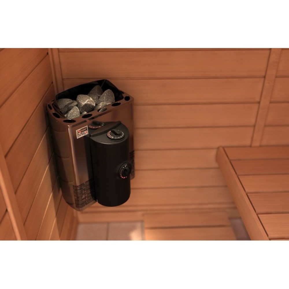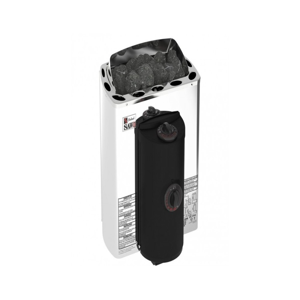 Электрические печи SAWO серии Mini являются прекрасным решением для маленьких саун. Компактные габариты и возможность переносить блок управления на левую или правую сторону позволяют разместить приборы данной серии в очень небольшом пространстве. Также есть возможность использования внешнего блока управления.