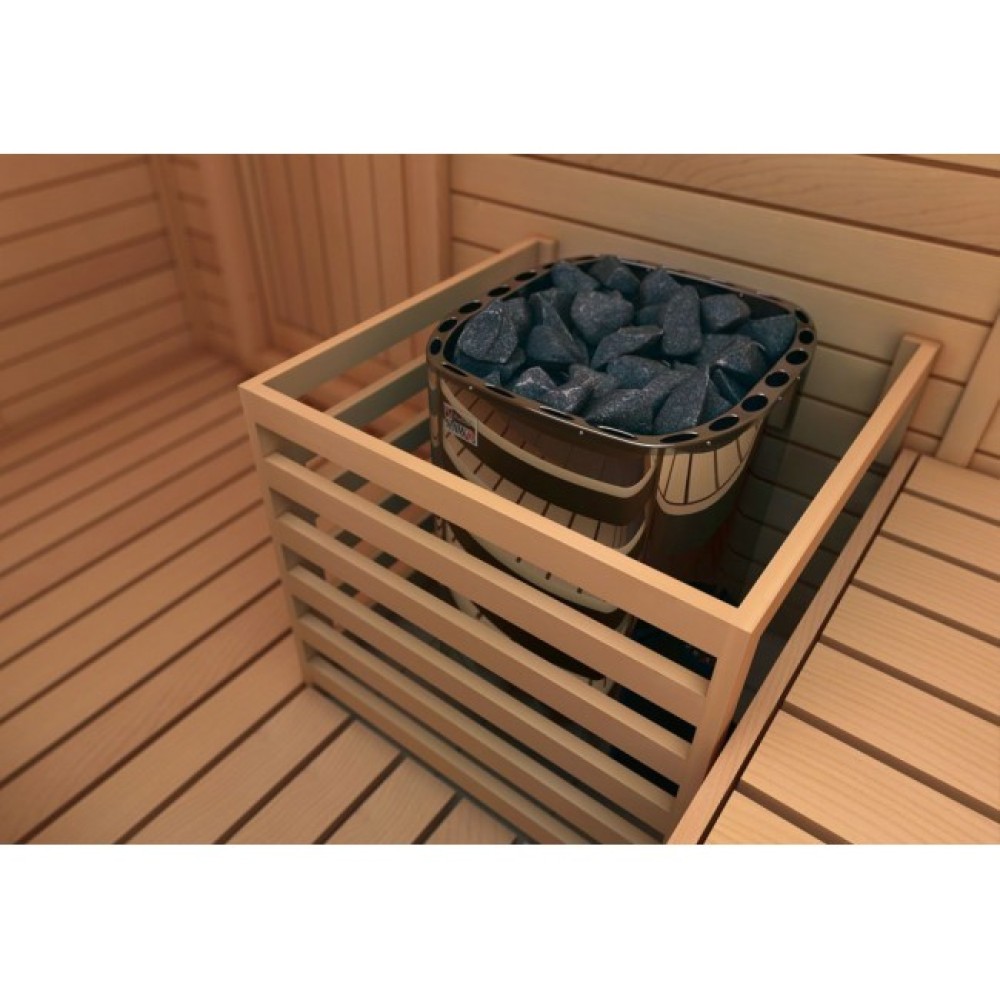 Электрические печи SAWO серии Savonia прекрасно подходят как для бытового, так и для коммерческого использования. Каменка не имеет острых углов и прекрасно вписывается в интерьер любой сауны. Загрузка большого количества камней позволяет получать большое количество пара. Все печи данной серии устанавливаются на полу и имеют регулируемые ножки.