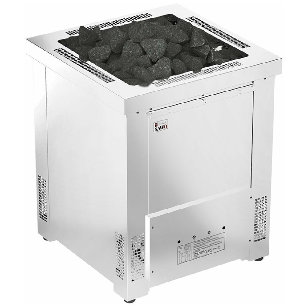 Описание SAWO TAU-105NS-G-PМодель каменки SAWO (Саво) TAU-105NS-G-P создана таким образом, что ТЭНы расположены в отдельном отсеке и не контактируют с камнями и водой, что обеспечивает долгий срок службы печи. Электрическая модель подключается к сети напряжением в 380 В, имеет номинальную производительную мощность в 10.5 кВт, которой достаточно для обслуживания парного помещения объёмом до 15 кубических метров.