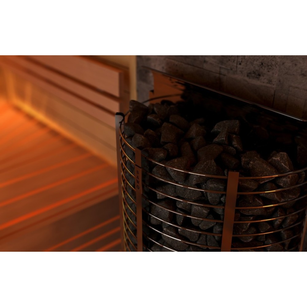 Электрические печи SAWO серии TOWER имеют необычный дизайн, который разработан для заполнения паром всей сауны от пола до самого потолка. Впечатляющий массив камней удерживают крепкие кольца из нержавеющей стали, внешне напоминая каменную башню. Нагревательные ТЭНы прибора находятся по центру. В линейке есть модель цилиндрической формы а также для пристенной и угловой установки.