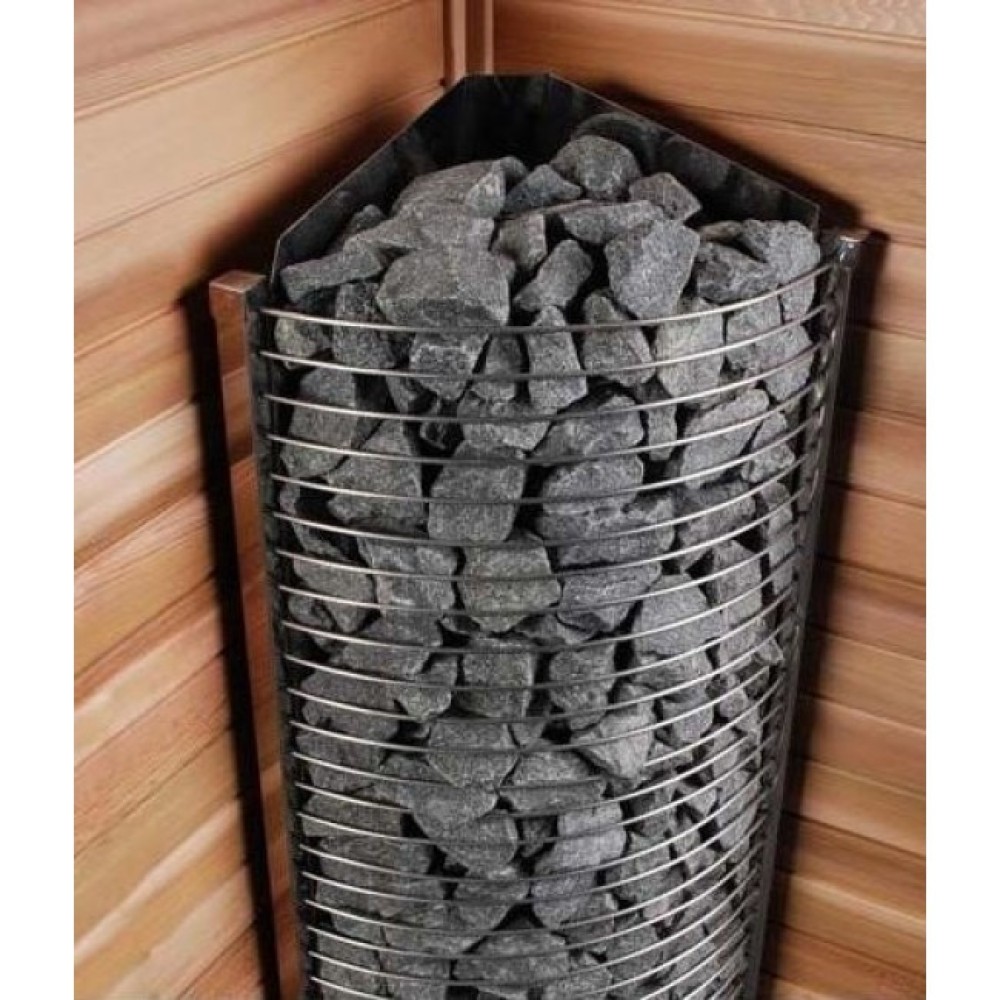 Электрические печи SAWO серии TOWER имеют необычный дизайн, который разработан для заполнения паром всей сауны от пола до самого потолка. Впечатляющий массив камней удерживают крепкие кольца из нержавеющей стали, внешне напоминая каменную башню. Нагревательные ТЭНы прибора находятся по центру.