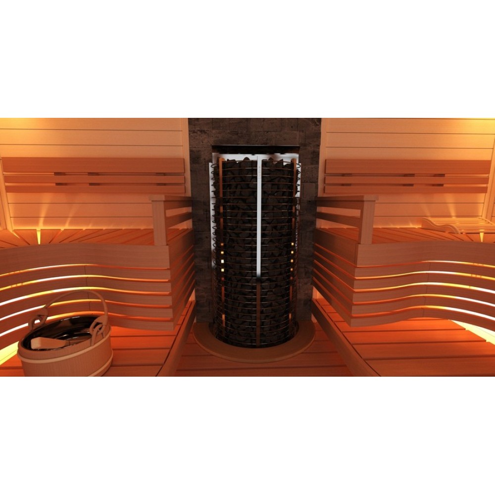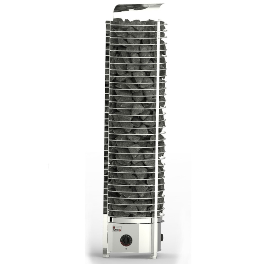 Электрические печи SAWO серии TOWER имеют необычный дизайн, который разработан для заполнения паром всей сауны от пола до самого потолка. Впечатляющий массив камней удерживают крепкие кольца из нержавеющей стали, внешне напоминая каменную башню. Нагревательные ТЭНы прибора находятся по центру. В линейке есть модель цилиндрической формы а также для пристенной и угловой установки.