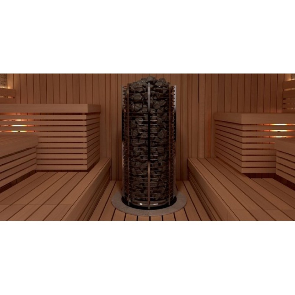 Электрические печи SAWO серии TOWER имеют необычный дизайн, который разработан для заполнения паром всей сауны от пола до самого потолка. Впечатляющий массив камней удерживают крепкие кольца из нержавеющей стали, внешне напоминая каменную башню. Нагревательные ТЭНы прибора находятся по центру.