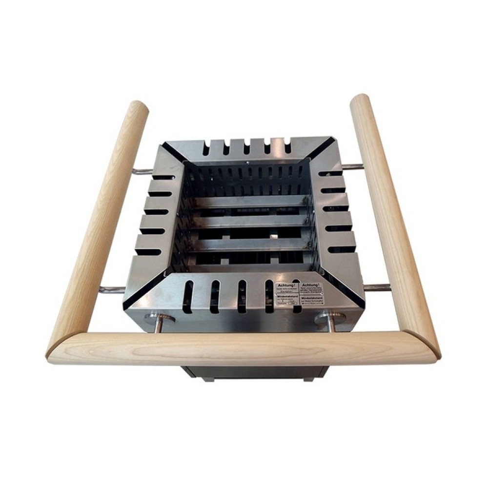 Опции: поручни (возможна поставка только держателей без деревянных деталей) и защита кабеля на задней стенке печи.