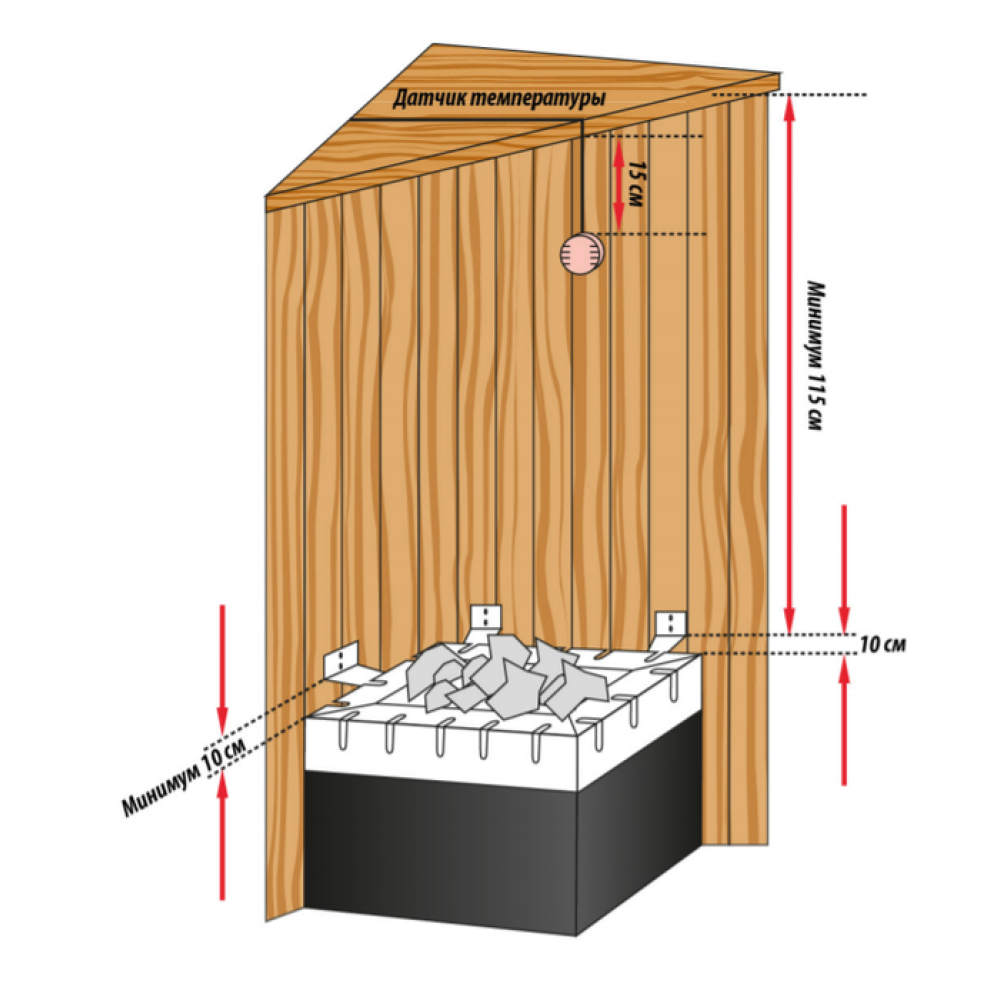 | Время нагрева сауны до 80 °С, мин | 40-90 |