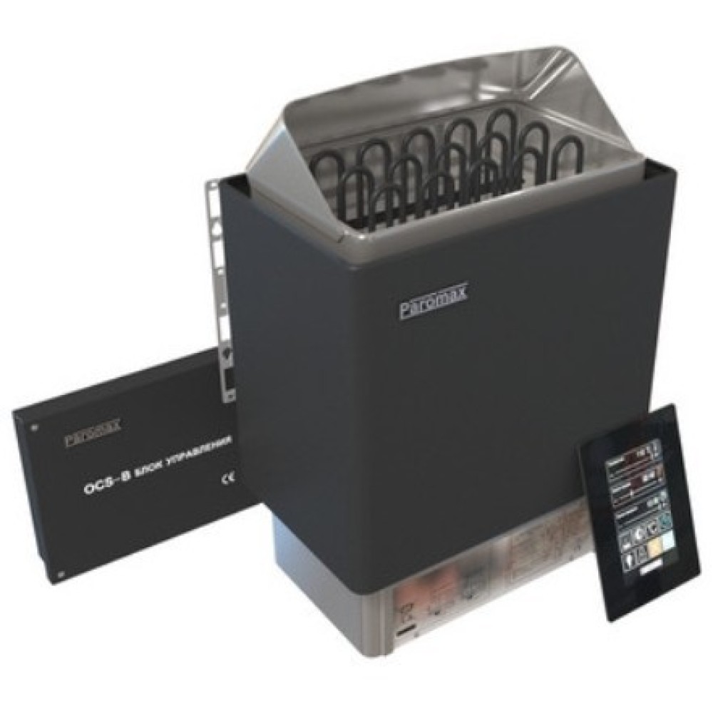 Описание Паромакс OCSX90BЭлектрическая печь для сауны Паромакс OCSX80B - это мощное оборудование для небольших парных, позволяющее в краткие сроки добиться максимального уровня температуры и сохранить его на протяжении необходимого времени. Устройство управляется при помощи выносного сенсорного пульта: он необходим для установки настроек и таймера.