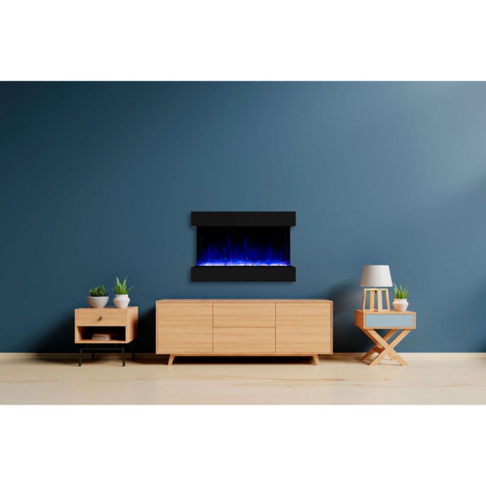 Astra – это модельный ряд линейных электрических очагов торговой марки Royal Flame, которые отличаются нестандартным исполнением – их топка открыта для обозрения с трех сторон. В качестве топлива производитель использовал также оригинальный набор – акриловые кристаллы и поленья, которые при подсветке светодиодными лампами смотрятся невероятно эффектно.