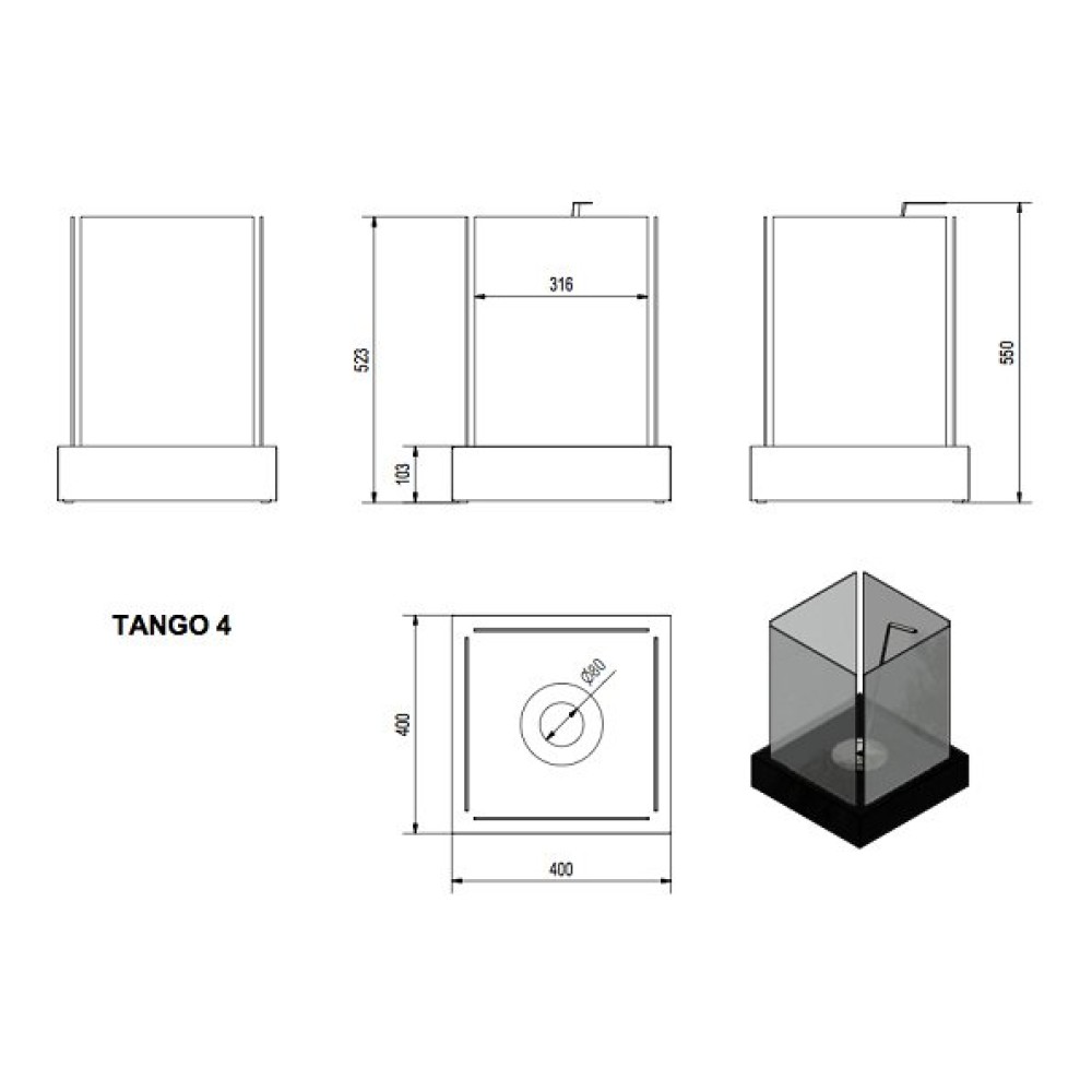 Технические характеристики Настольный биокамин Kratki TANGO 4 белый, TUV