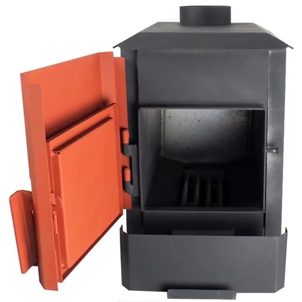 - Конструкция топки оснащена двумя отбойниками (оборотами) и обеспечивает более эффективную отдачу тепла.