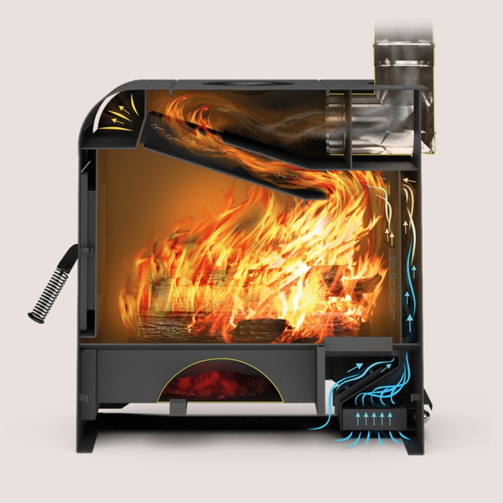 Энергозависимые дровяные печи серии МЕТЕОР способны решить проблему быстрого и равномерного прогрева помещения. Производитель оснастил модели линейки встроенных вентилятором наддува воздуха. Устройства обладают несколькими режимами действия. В качестве материала изготовления приборов выбрана конструкционная сталь.
