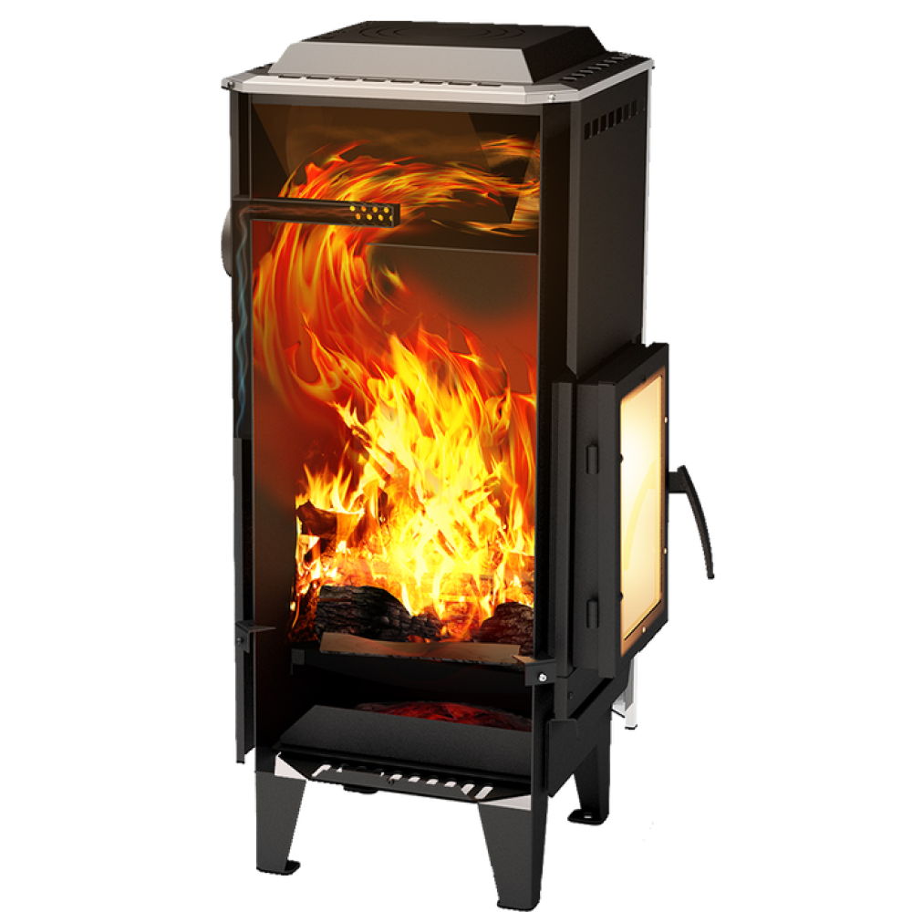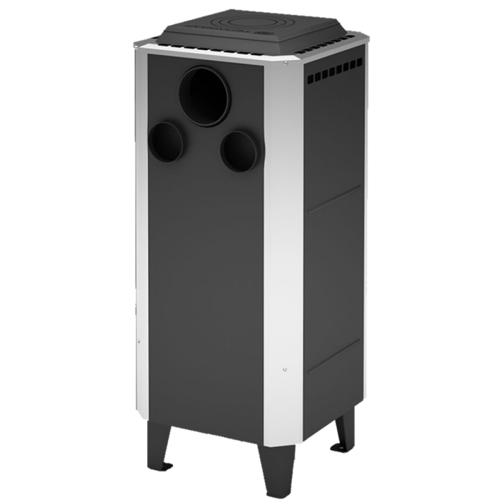 ВЕРТИКАЛЬ Металлика Теплодар это компактная модель из качественной котловой стали, выполненная в современном стиле. Печь способна быстро протопить комнату площадью до 120 квадратных метров, а за счет каменной облицовки топка долго сохраняет тепло даже при погасших дровах. Прекрасно справится с отоплением смежных помещений — на задней стенке печи размещены специальные теплоотводы.